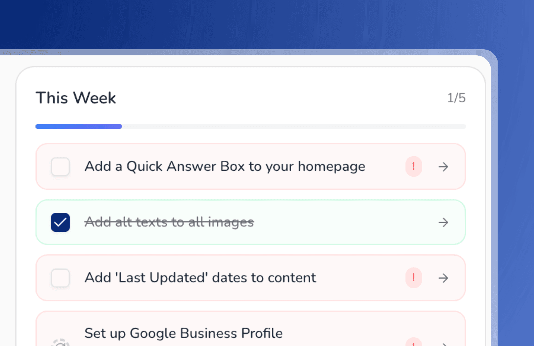 Forget endless to-do lists. We give you a maximum of 5 simple, high-impact tasks each week. We tell you exactly what to do.