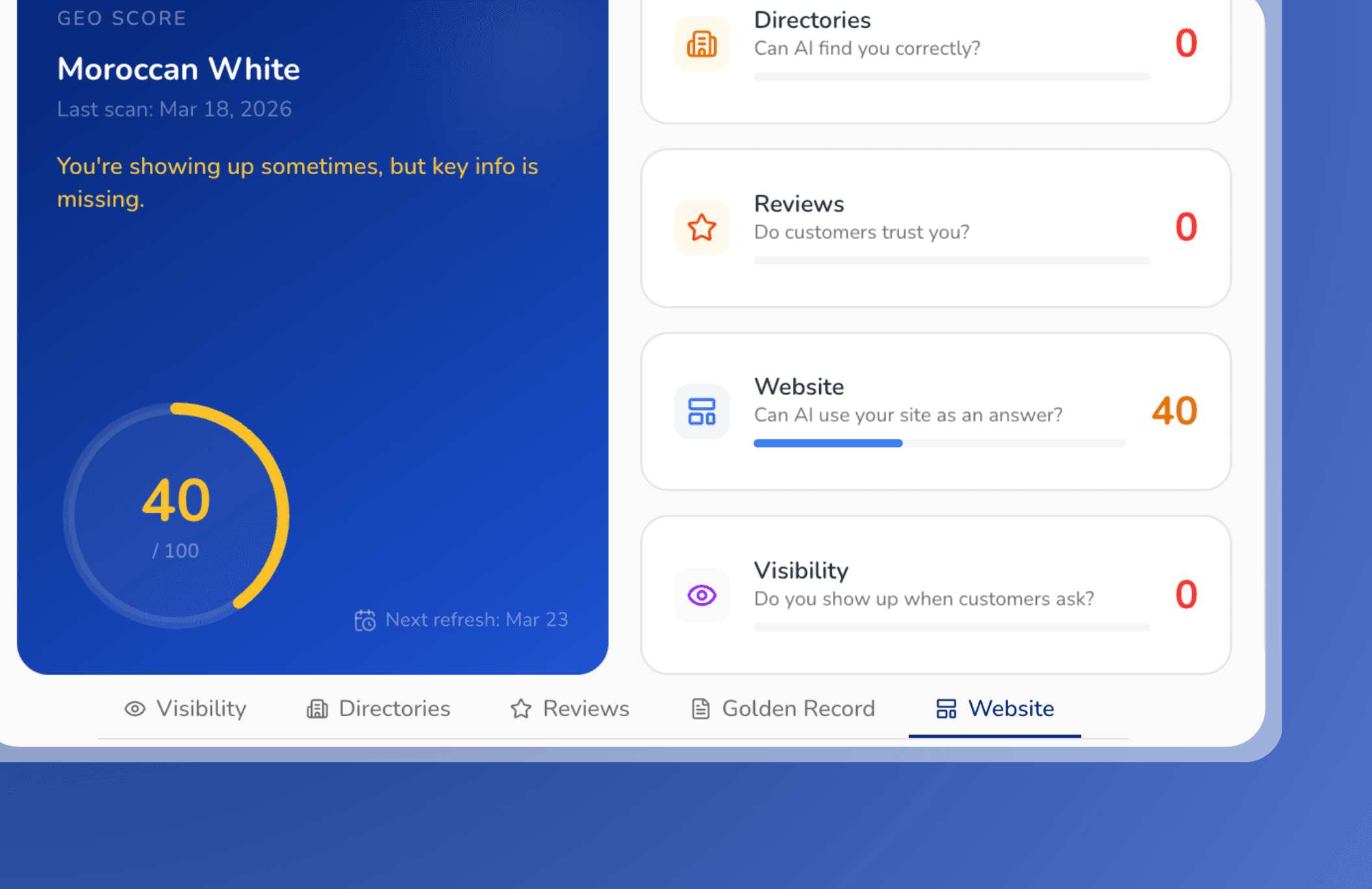 Takes the guesswork out of AI visibility with a simple, guided workflow built specifically for small businesses to generate more customers.
