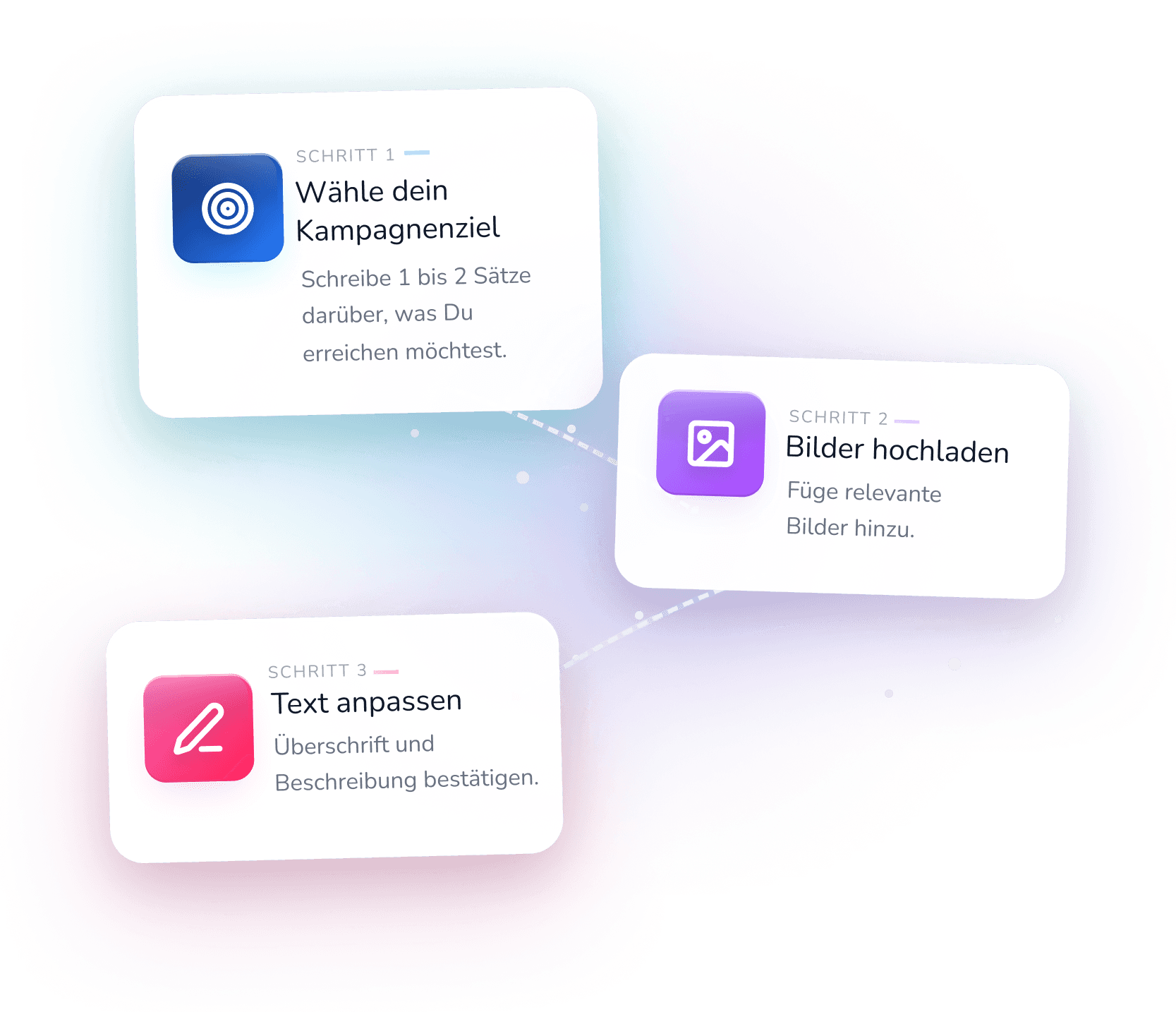 Mach alles innerhalb von Adlarion, keine Meta oder Google Ads Manager, keine komplexen Tools, nur 3 einfache Schritte und du bist live!